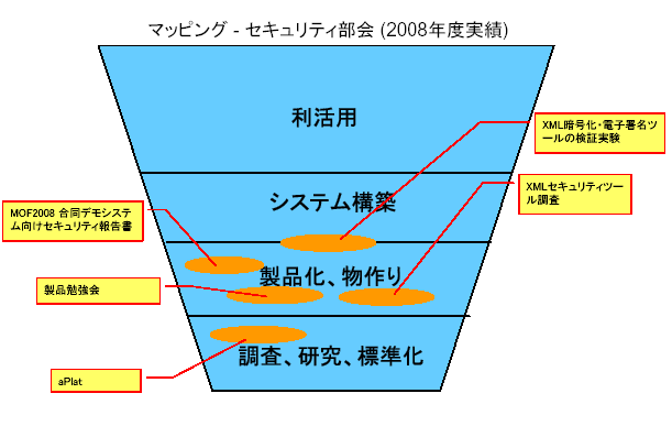 XMLセキュリティ技術のビジネスシステムへの適用に向けて、規格の調査・翻訳・解説を行ない、また、アプリケーションモデルの検討・試作を通じてシステム構築における様々な問題点の解決方法や具体的な実装ノウハウを蓄積すると共に、それらの成果物を公開することによりセキュリティ技術の実用システムへの適用を促進させるべく活動を行なう。